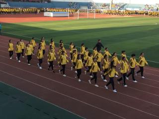 她表示: 近年来,我校全力打造精品学校,努力争创国际一流,在校园规划建设、学生特长培养、教育教学改革等方面均取得了可喜的成绩。特别是今年我校体育中考成绩在全区遥遥领先,我校培养的学生代表山东省参加2017年全运会,获得桥牌青年组季军;我校初四的同学代表芝罘区参加2017年烟台市运动会,分别获得亚军、季军的优异成绩。成绩的取得与我校坚持“为学生终身发展负责”的指导思想密不可分,更是我们全校师生齐心协力、不断超越的结果。 老师们,同学们,体育是力量的角逐;体育是智慧的较量;体育是美丽的展示。在紧张激烈的赛场上,我希望全体同学以我国的奥运体育健儿为榜样,以饱满的激情、昂扬的斗志、勇于拼搏的信念、团结向上的精神投入到本届运动会中去,体验竞赛的魅力,诠释坚持的神奇,顽强拼搏,超越自我!希望全体裁判员、工作人员坚持公开、公平、公正的原则,严肃赛风,严格赛纪,确保运动会的顺利进行。让我们共同努力,把本届运动会办成一个“安全、文明、和谐”的盛会。